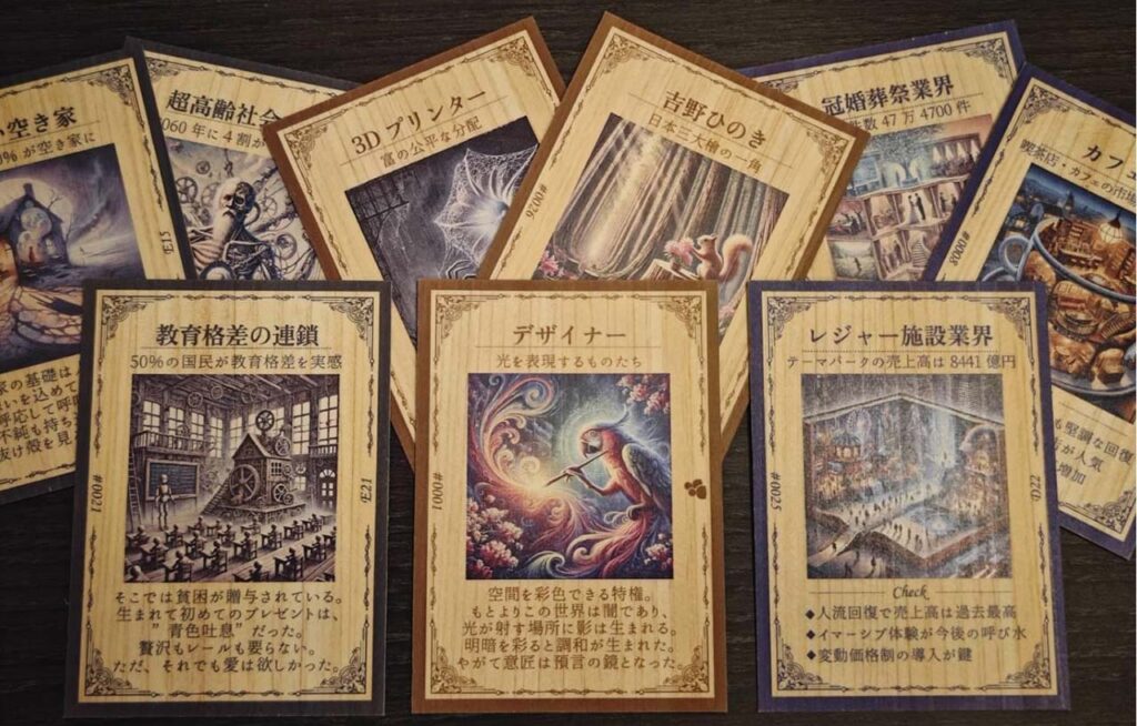 東京タワーではアトラクションの一つとして採用され、来場者に「組み合わせから即興で問いを作り、世界を見つめ直す体験」を提供しています。館内に指南役(マイスター)が在籍しており、限定開催ではあるものの開催時には高い満足度/レビューを頂けています。
