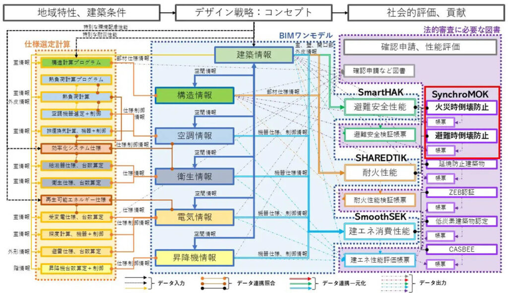 大林組は、火災時倒壊防止性能検証法および避難時倒壊防止性能検証法に基づき、木構造の燃えしろ深さ計算をBIM(ビルディング・インフォメーション・モデリング)と連携して自動的に行うツール「SynchroMOK(シンクロモック)(TM)」を開発した。これにより、中規模建築物の純木造化設計における障壁となっていた複雑な計算プロセスを大幅に効率化し、準耐火構造の提案を後押しする。