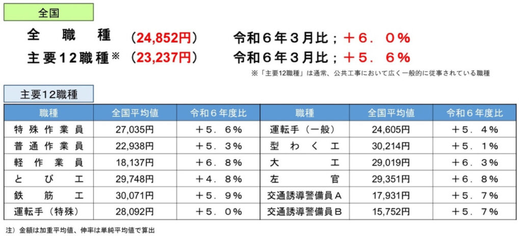 さらに、労務単価の動きも担い手不足を裏付けている。国交省の労務単価は上昇が続くものの、あくまで公共工事の積算基準であり、下請構造を通った実勢の手取りはこれを下回る。大工・左官・鉄筋はいずれも名目上は高単価でも、手取り段階では普通作業員との差が縮まり、長い修業期間に見合う報酬とならないことが若年層の定着を妨げている一因と考えられる。