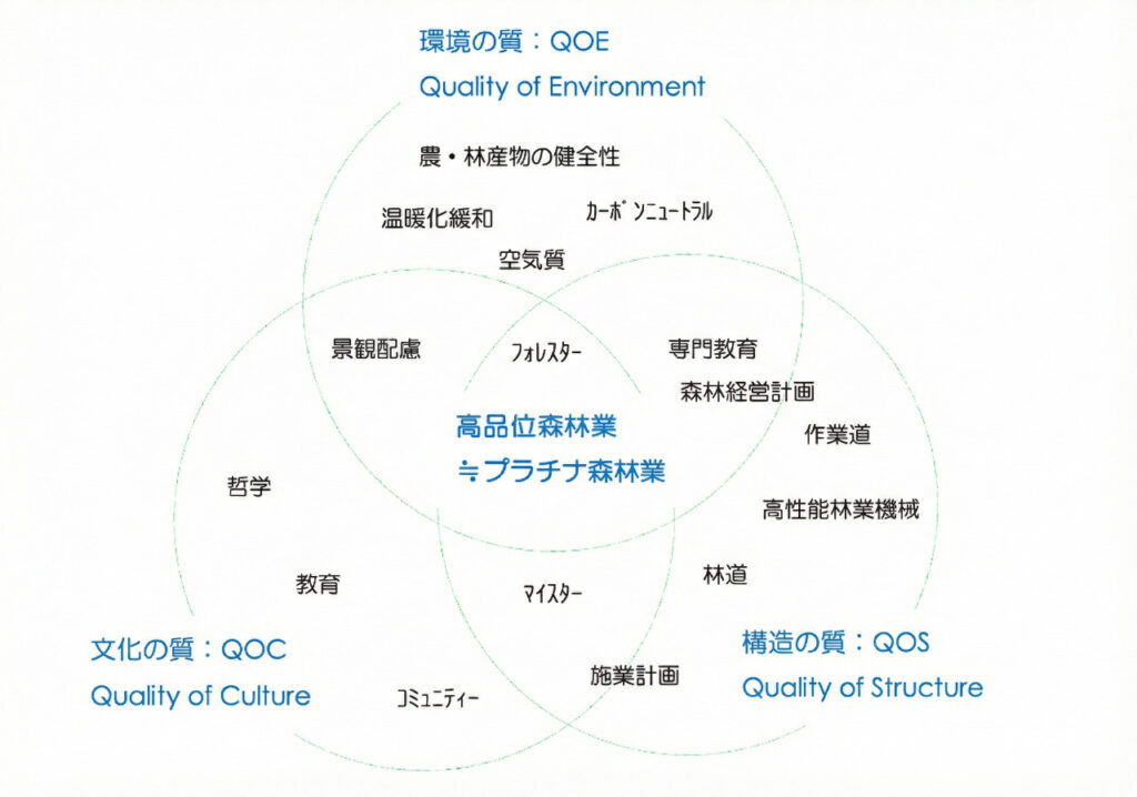 この3つの「質」を全て考えバランスさせたところに「高品位森林業≒プラチナ森林業」がある。次回以降、日本の林業と比較したコラムも追加していきたい。(株式会社アルファフォーラム・代表取締役社長、プラチナ森林産業イニシアティブ・ステアリングコミッティー 小林靖尚)