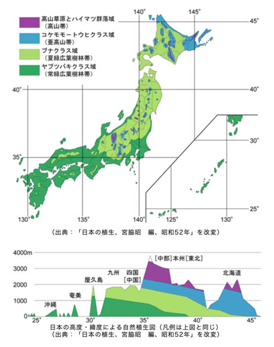 人間の手が入っていない植物群落(これを原植生と呼ぶ)はほとんどない。著者らの調査によれば、日本国内で原初の植生をとどめている土地の面積はなんと「0.6%」だ。これからの、あるべき自然の姿は、いったん人間の手が入ってしまった現状(これを現状自然植生と呼ぶ)を認めた上で議論するほかない。
