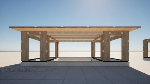 規模・構造:平屋及び2階建、全5棟・木造(CLTを使用した箱型ユニットの構造)