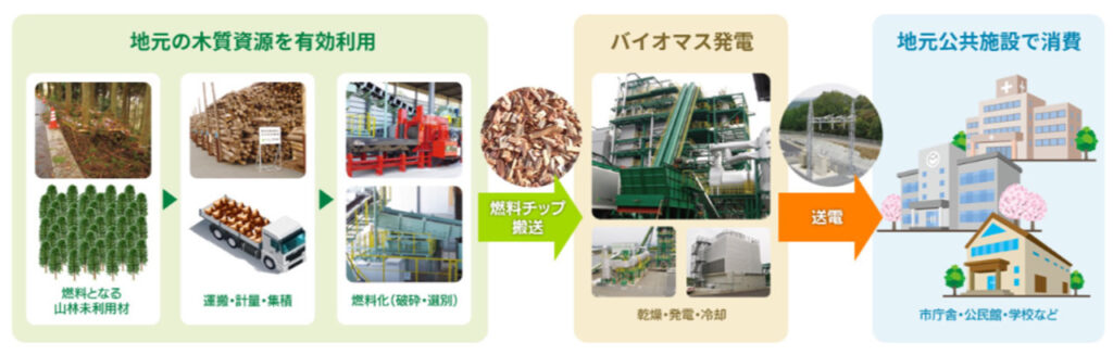 この取り組みは自治体だけで完結する施策ではなく、民間事業者が設備運営・燃料調達・電力供給、さらには再造林までを一体的に担うことで、実効性のある資源循環を実現している。資源エネルギー庁の顕彰事例では、代表申請者を株式会社モリショウ、共同事業者を株式会社グリーン発電大分、日田グリーン電力株式会社、日本フォレスト株式会社とし、連携市区町村を日田市としている。