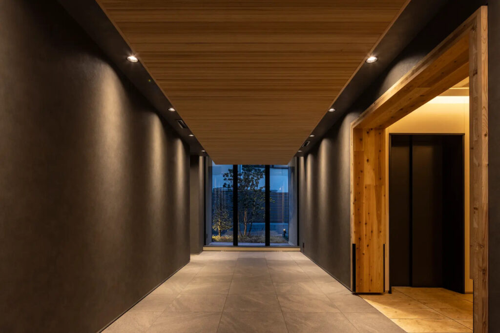 本物件の根底には、居住者の心身を健やかに保つ「ウェルビーイング」というコンセプトがある。共用部のエントランスやプロムナードにも木材がふんだんに活用されており、都心にいながら日常的に木の香りと温もりを感じられる設計がなされている。