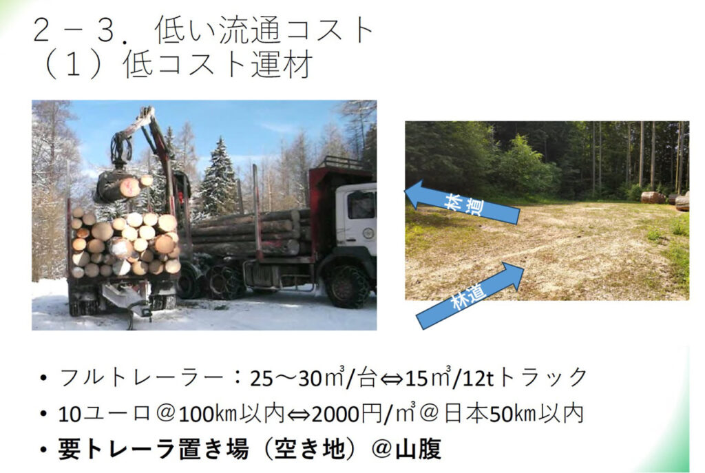 【オーストリア林業に学ぶ素材生産革新:2】 林道密度は日本の3倍 伐出コストを下げる「道端林業」とは