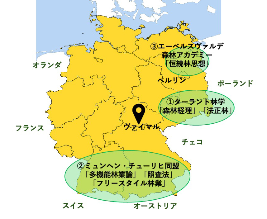 And it seems that the forestry philosophy has regional characteristics. If we drop "Taranto (Saxony)," "Munich-Zurich (Bavaria)," and "Eberswalde (Prussia)," which Mr. Murao mentioned, on the map, it looks like another map. It is like a map of the Three Kingdoms.