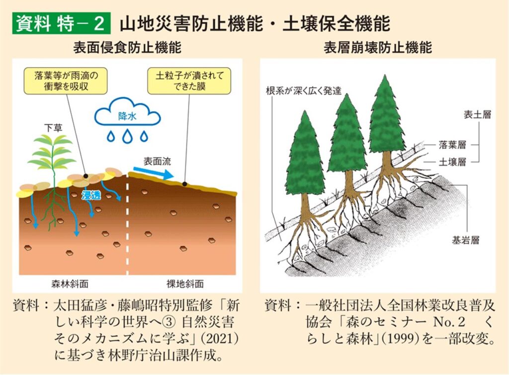 Some estimates suggest that the economic benefits of forests (if all forests were replaced by construction work, etc.) would exceed 70 trillion yen per year due to flood and sediment disaster prevention effects.
