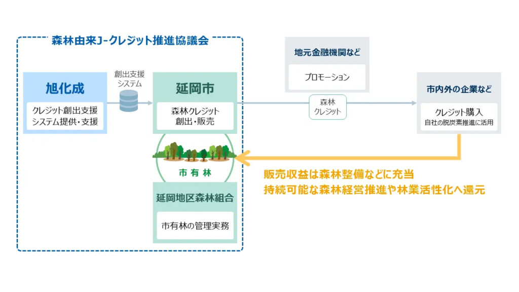 Proceeds from the sale of forest-derived J-Credits serve as a funding source for forest conservation activities, contributing to environmental preservation and revitalizing the local economy. However, there have been structural challenges, such as cumbersome application procedures and the difficulty of obtaining certification without specialized knowledge. In fact, Nobeoka City once attempted to create credits independently but was forced to abandon the effort midway.